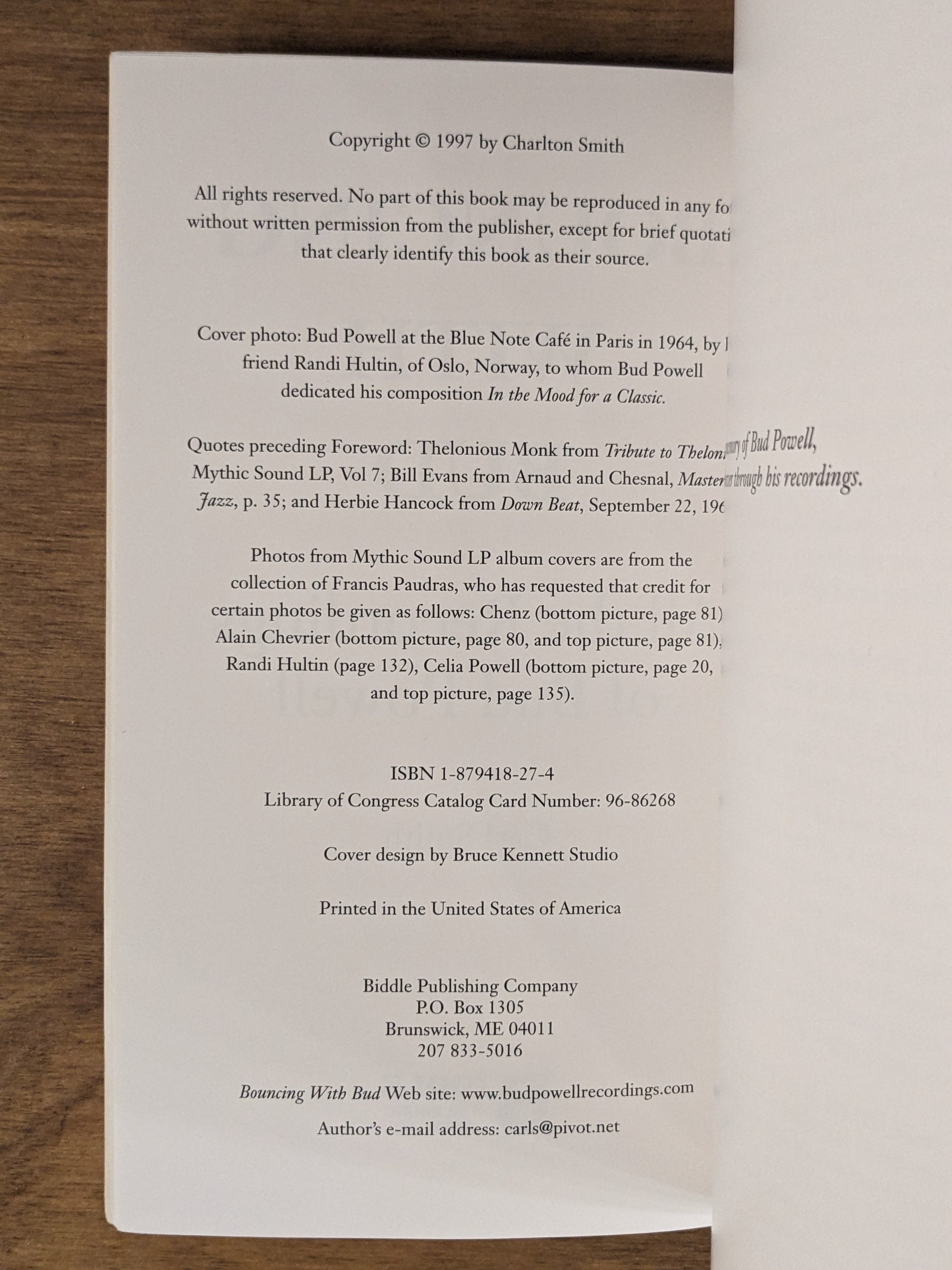 Biddle Publishing Company, Brunswick, ME, 1997, First Edition, trade paperback. A must for Bud fans, the author covers all the recordings in chronological order and also provides an overview of the great pianist's career and life, with much good to say about Powell's often overlooked later recordings. B&W archival photos and album covers. Near fine. Delicate-red wraps with slight fading to spine, very minor wear to corners. No tears or creases of any kind. Pages clean and unmarked. Binding square and tight. J104