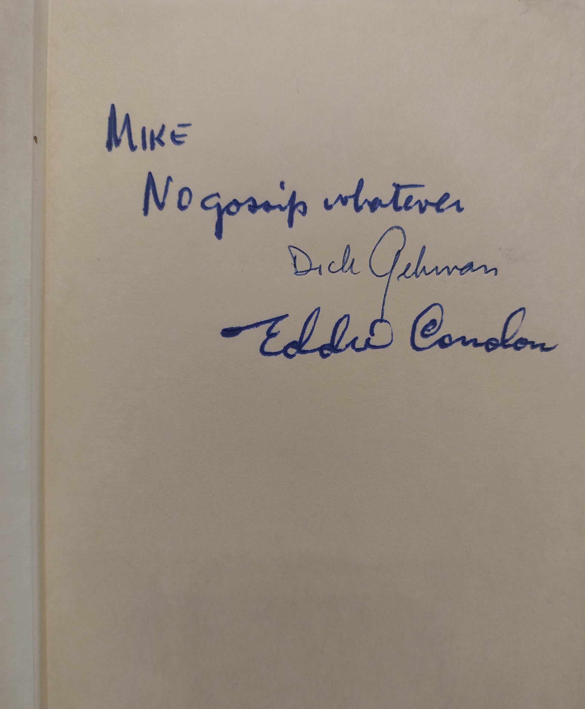 Very good first edition, inscribed by Condon and Gehman on free front end paper. Binding square and tight. Pages clean and unmarked. Minor bumping to ends of spine. Minor age toning to textblock. Slight dents to top and bottom of textblock. Front and rear hinges loose. Slight age toning to interior of front and back cover. Good dust jacket. Not price-clipped. Area of loss to top and bottom of spine. Slight fading to sides of spine. Slight wear to front cover. Minor creases to top and two half inch tears to bottom of front cover. Minor rubbing and stain to back cover. Slight crease to bottom of back cover. Very slight areas of loss to ends of folds. Minor wear to folds. What appears to be five scotch tapes to interior of dust jacket. Overall, a nice inscribed first edition by the leading figure in Chicago jazz, Eddie Condon and one the most significant American writers in jazz, Richard Gehman. 13433