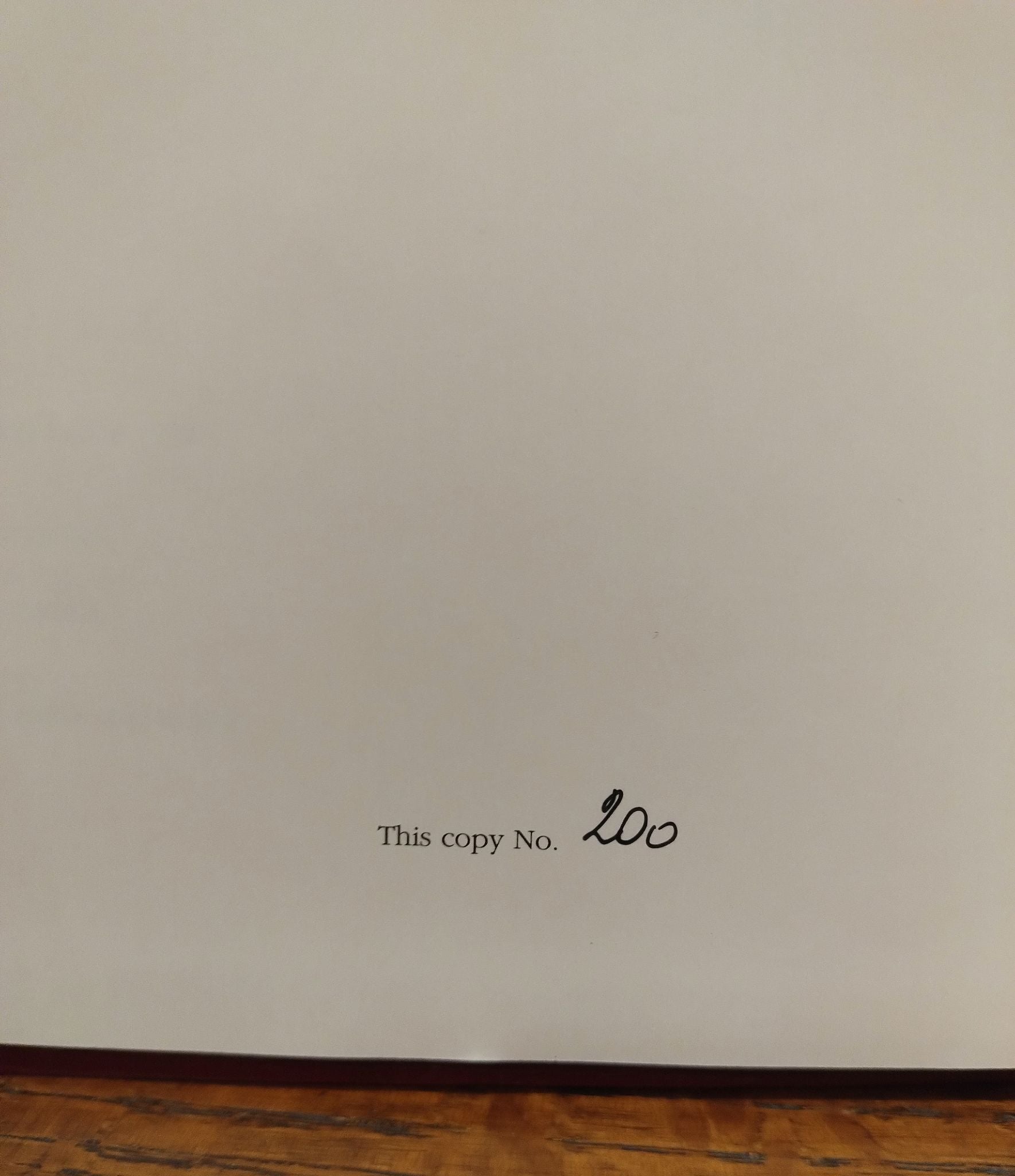 Near fine first limited edition. Number 200 out of an unknown number of copies. Binding square and tight. Pages clean and unmarked. Slight wear to top of spine. Numerous small indentations to front cover. Slight wear to corners of front and back cover. No jacket, as issued. A great first limited edition copy.