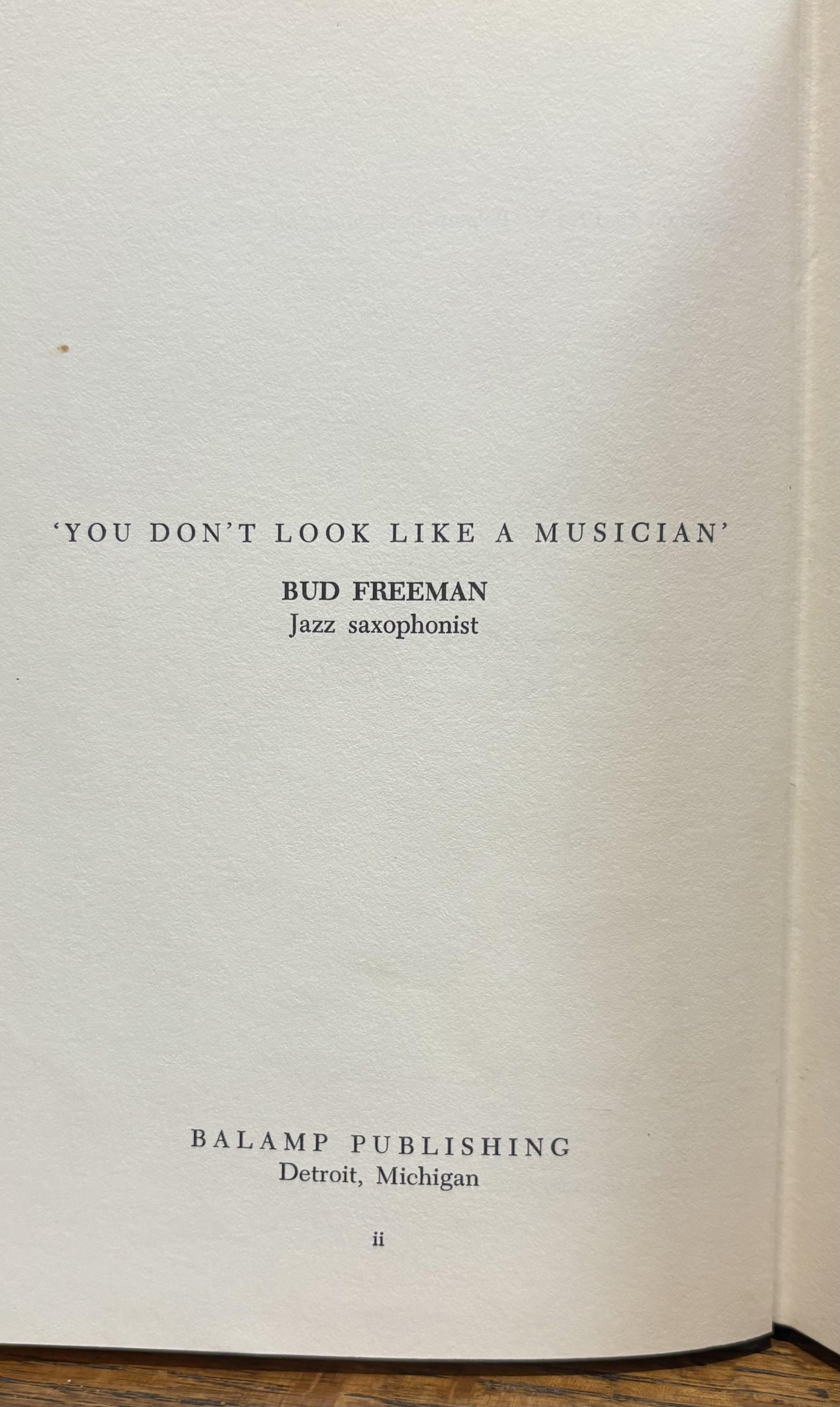 Very good first edition, inscribed by Freeman to front end paper. Binding square and tight. Pages clean and unmarked. Slight wear to edges of spine. Slight specks of discolouration to covers. Very minor puncture to bottom of front cover. Slight wear to corners of covers. Fine dust jacket. Not price-clipped. In mint condition. A revelation on Freeman's philosophy of life and anecdotes about his many celebrated contemporaries from the 20s-70s as he did music.